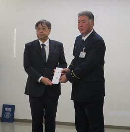 令和7年12月22日(月)に、一般社団法人北海道消防設備協会帯広支部様(池田 誠 支部長)から消防歳末警戒に従事する消防職団員への激励として、非常用食料が贈呈されました。