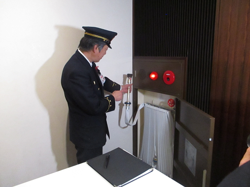 屋内消火栓設備の確認を行っているところ