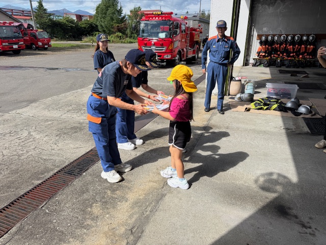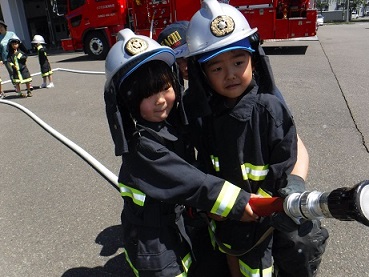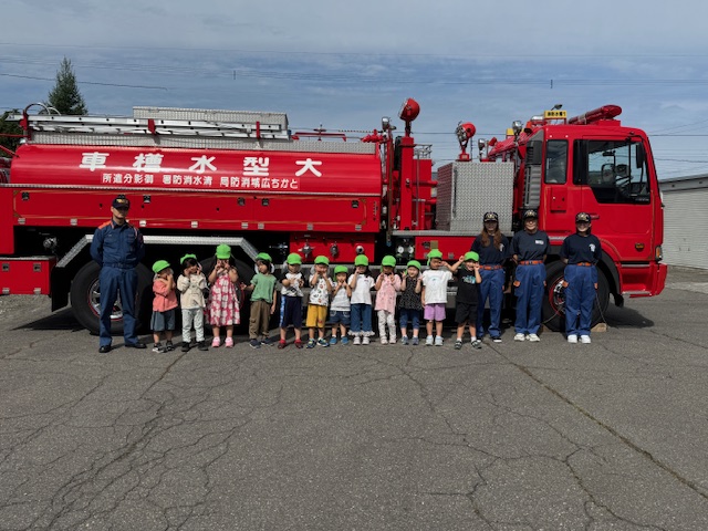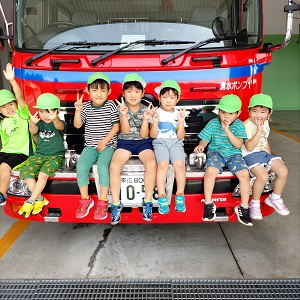 令和7年7月9日、9月4日、9月18日の3日間で、清水・御影地区2カ所のこども園の幼年消防クラブを対象に「青空防火教室」を開催しました。 この教室は、幼年期における防火教育の一環として、清水消防署・御影分遣所で開催し、放水体験や各種車両の見学、煙体験を通じて、防火に対する知識の向上を目的としています。 園児たちにはこの防火教室を通じて、消防・救急車両の役割や煙の怖さを伝えました。