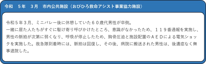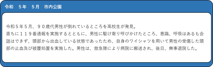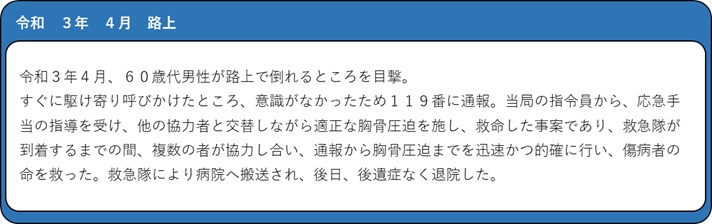 その場に居合わせた人が応急手当を行って救命された奏功事例