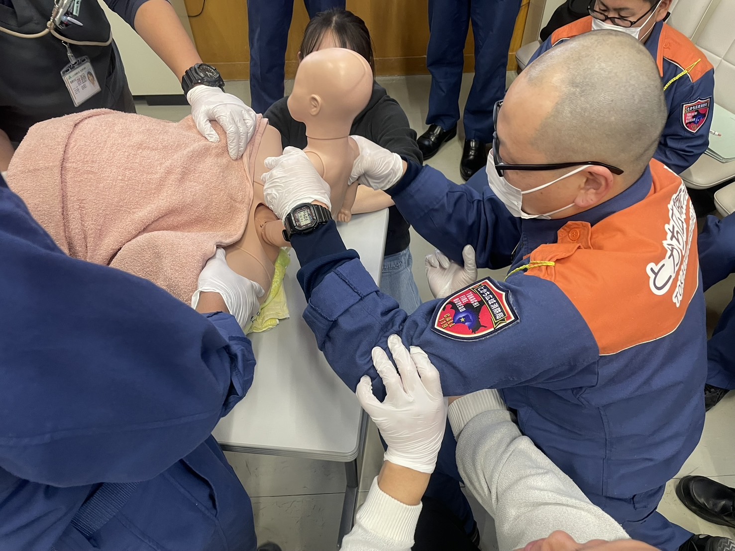 令和7年12月2日(火)、陸別消防署において帯広厚生病院、帯広協会病院の助産師及び看護師、総勢11名の周産期医療スタッフを講師として招き、新生児蘇生法、分娩介助、分娩後対応、女性傷病者の評価に関する学習を目的とした「池北ブロック教育訓練・周産期研修」を実施しました。