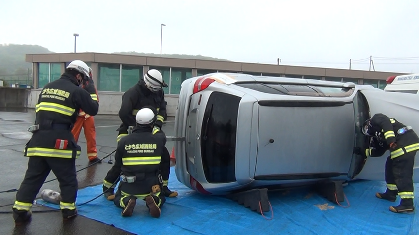 幕別消防署では、令和3年9月8日(水)、9日(木)の2日間、幕別消防署札内支署において、廃車を使用した交通事故想定訓練を実施しました。 本訓練は、交通事故を想定し、救助隊・救急隊の連携を図り、要救助者を迅速に救出することを目的とした訓練です。実際に車両を使用し、ハイブリッド車、横転、挟まれ事案等の救助技術の習熟、連携強化を行いました。 今後も多種多様な災害に備え、日々精進してまいります。