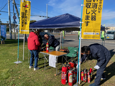 令和7年秋の火災予防運動に合わせ、一般社団法人北海道消防設備協会帯広支部(池田誠支部長)様のご協力のもと、合計288本の老朽化消火器を回収しました。