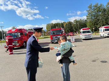 令和7年10月19日に清水消防署で開催された「第8回防火フェスティバル」において、とかち広域消防局情報指令課では119番通報啓発活動を行いました。