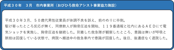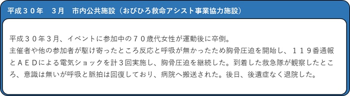 その場に居合わせた人が応急手当を行って救命された奏功事例