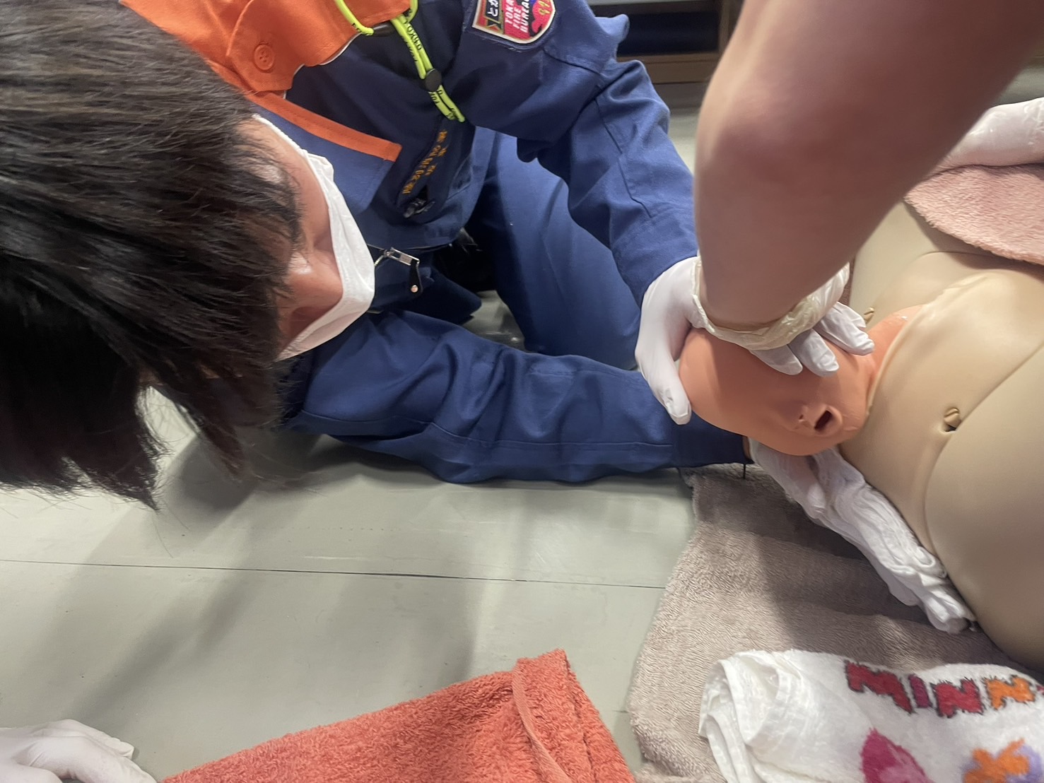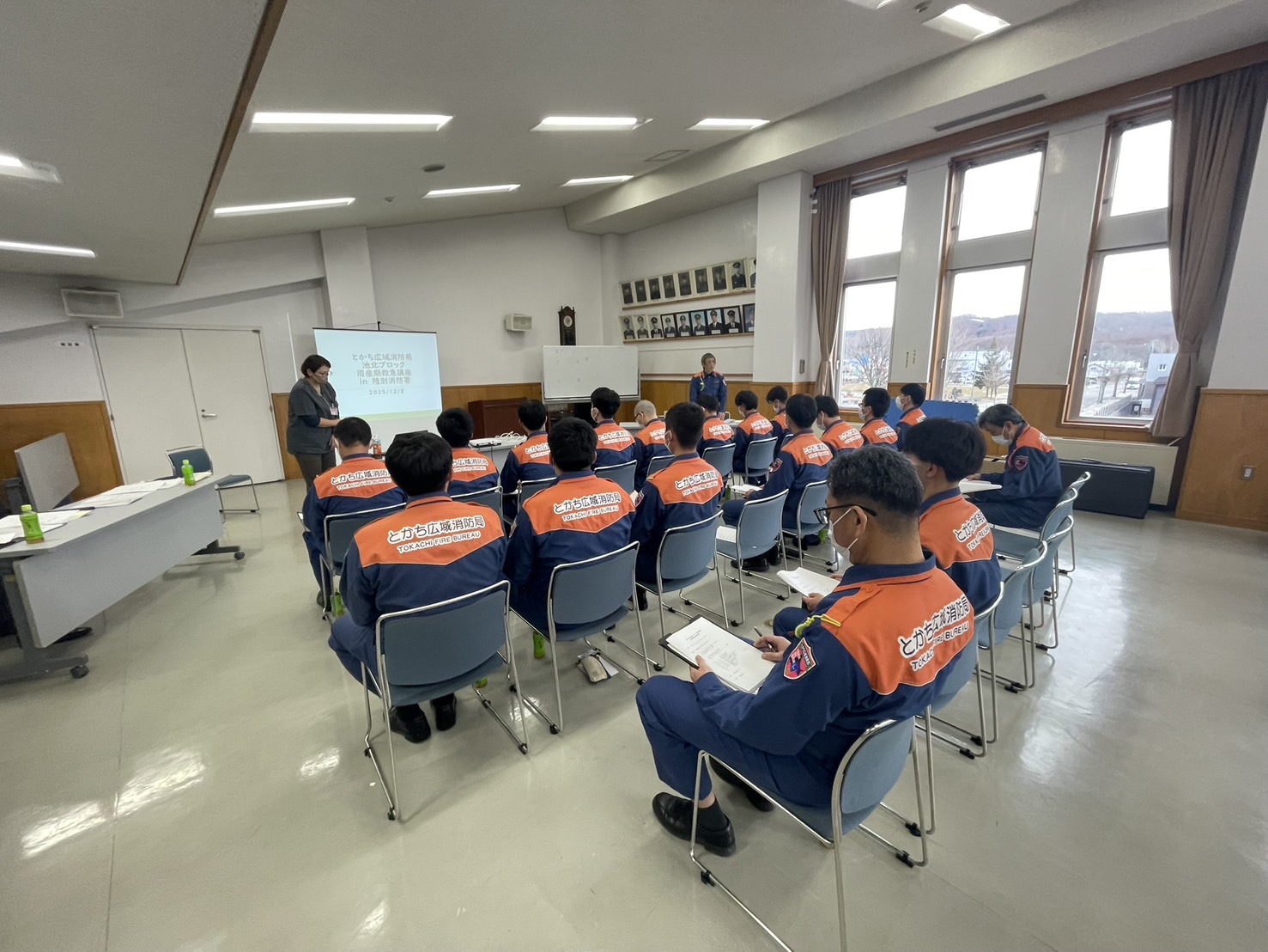令和7年12月2日(火)、陸別消防署において帯広厚生病院、帯広協会病院の助産師及び看護師、総勢11名の周産期医療スタッフを講師として招き、新生児蘇生法、分娩介助、分娩後対応、女性傷病者の評価に関する学習を目的とした「池北ブロック教育訓練・周産期研修」を実施しました。